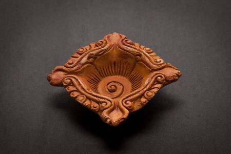 A beautiful Handmade Designer Clay Lamp isolated on dark background.