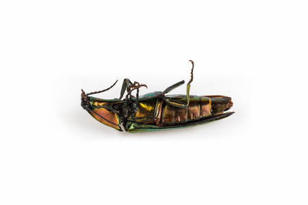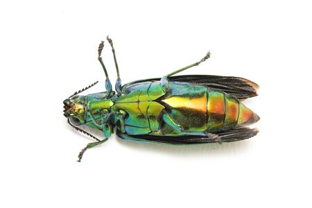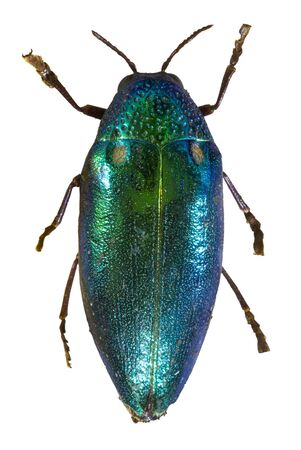 Beautiful Jewel Beetle or Metallic Wood-boring (Buprestid) top view isolated on white background