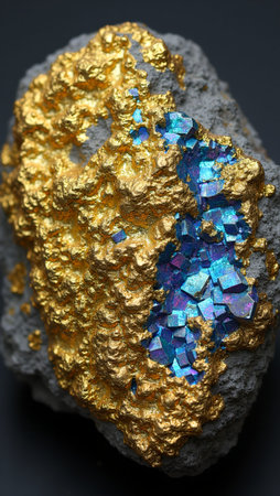 Crystal,nugget, gold, bronze, copper, iron Macro