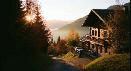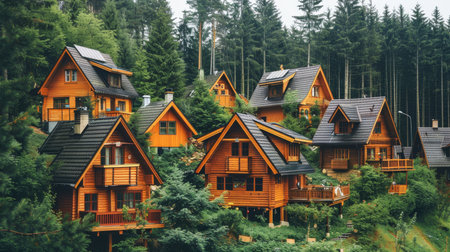 Charming austrian mountain village featuring traditional wooden homes nestled in nature s beauty