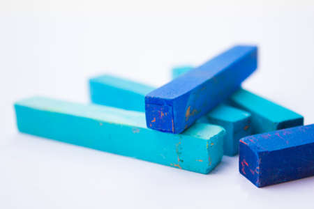 Pieces of chalk isolated on blue background