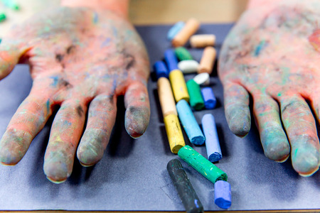 Art Supplies: Color Chalk Pastels. Palette, artist.close-up. View from above