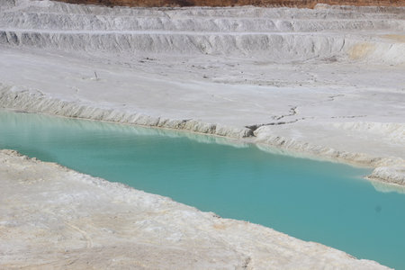 Quarry extraction porcelain clay, kaolin, with turquoise water