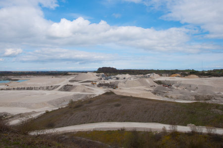 Landscape of the sand quarry wall on background