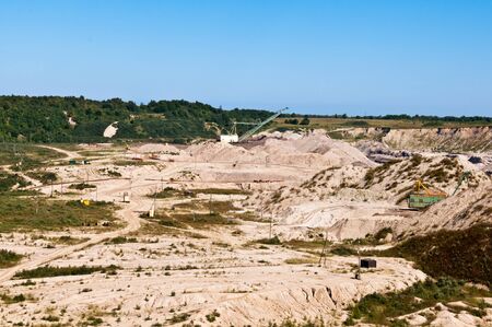Excavators extracts the clay into open industrial quarry. High quality photo