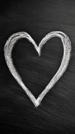 A chalk-drawn heart on a black background, with a place for text. Valentine card