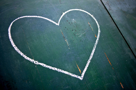 One heart are hand drawn with chalk on a greenboard. Valentines day. I love you. Health care concept.