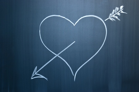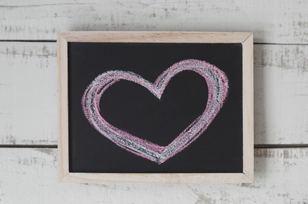 Handwritten heart on blackboard. Chalkboard with heart shaped drawing. Love concept
