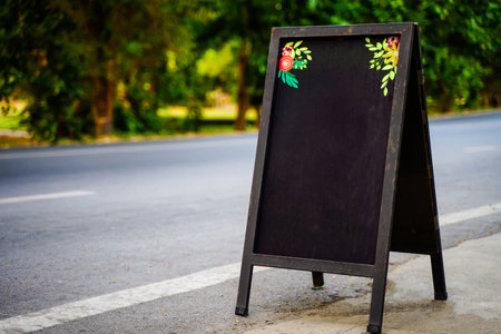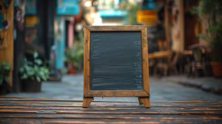 Black menu board on the wooden floor