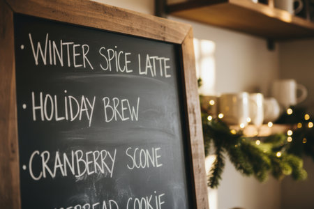 Chalkboard menu displaying seasonal winter drinks and food items.