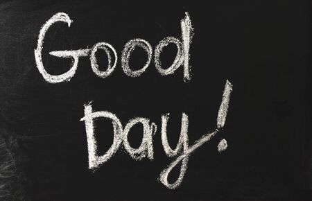 Smile. Text handwritten in chalk on a chalkboard. Hand drawn doodle.