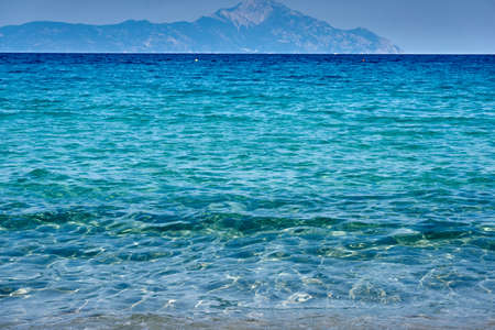General view over Aegean sea and Mount Athos, Greece, Sithonia.