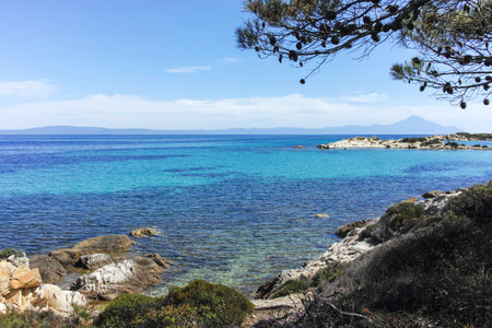 Amazing view of Sithonia coastline near Lagonisi Beach, Chalkidiki, Central Macedonia, Greece