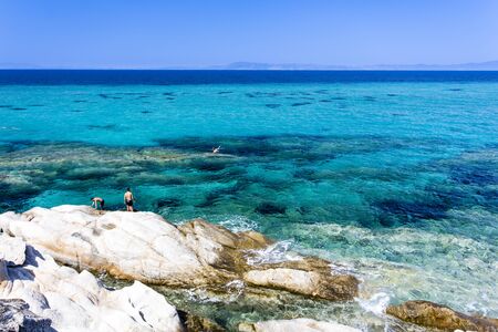 Sithonia - Halkidiki/Greece, August 24, 2018: Turquoise waters of Sithonia is a popular destination for locals and foreigners.