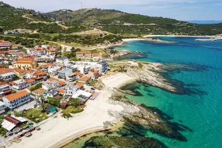 Aerial view of Sarti village on the Sithonia peninsula, in the Chalkidiki , Greece