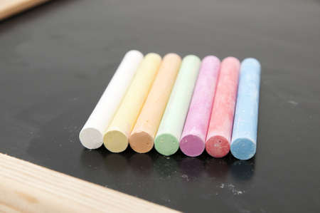 Row of color chalk on a blackboard