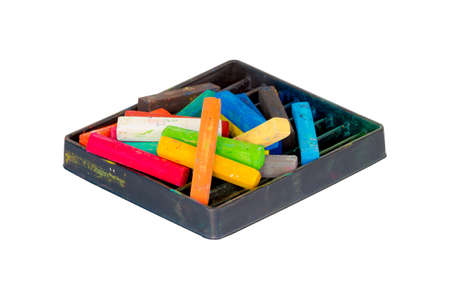 multicolored chalks in a box close up