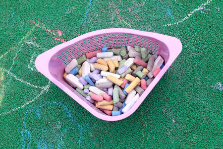 Drawing with chalks asphalt colored crayons