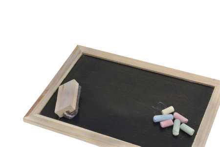 School blackboard or chalkboard, blank, with eraser and chalk