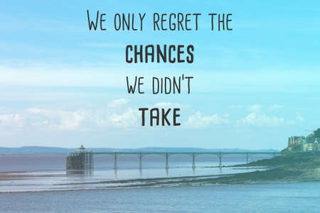 Motivational quote on burnt edge brown paper with pen and smartphone on wooden desk
