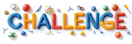 Challenge Typography from Sports Equipment with Studio Photography On White Background