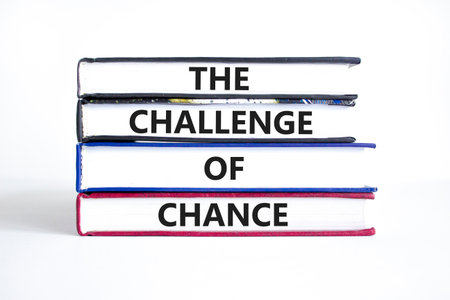 The challenge of chance symbol. Concept words phrase The challenge of chance on beautiful books. Beautiful white paper background. Business The challenge of chance concept. Copy space.