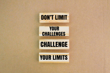 Motivational and inspirational quote - Don’t limit your challenges, challenge your limits. Blurred styled background.