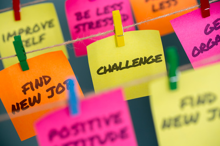 Different paper notes hanging on ropes, closeup. Change Habits