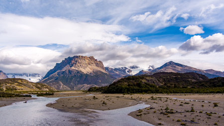 River Valley of Rio de las Vueltas. Patagonia. Argentina. The surroundings of the village El Chalten.