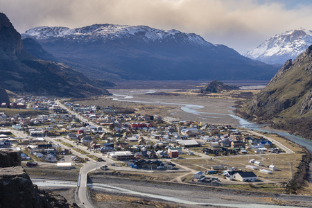 A panorama of the town of El Chalten with the Fitz Roy mountain in the background. Located in the Patagonia region of Argentina.