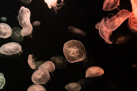 Sea jellies or Jellyfish in Institute building Marine Aquarium and Science Museum for thai people traveler travel visit learning aquatic animals sea life in Chonburi, Thailand