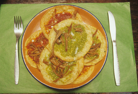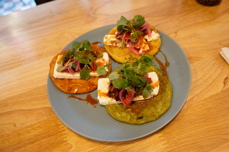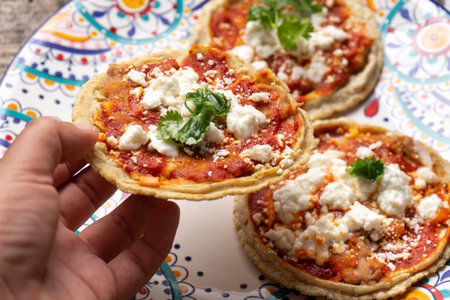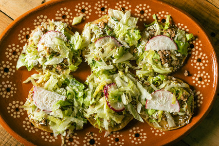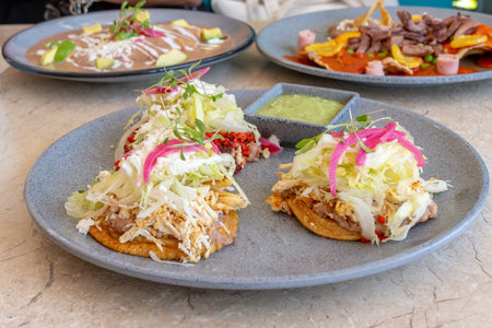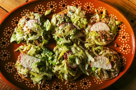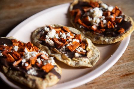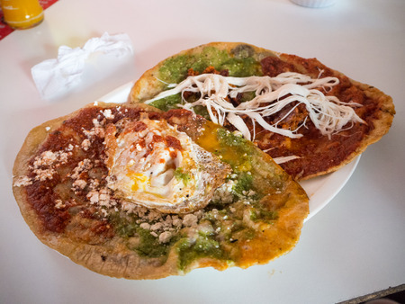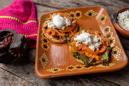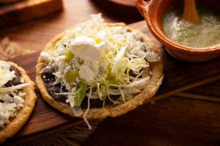 classic mexican food dish with sopes with sauces