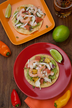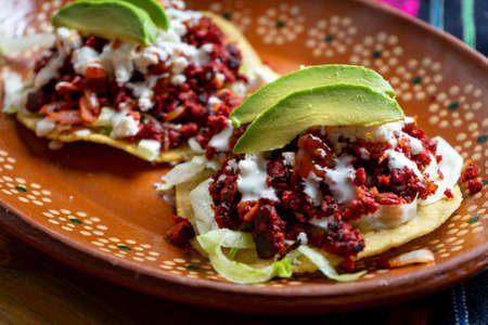 Traditional mexican food. Chorizo tostadas