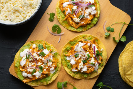 Traditional mexican chicken tinga tostadas