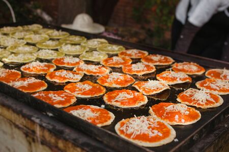 Close-up of delicious street gorditas. Mexican street food.