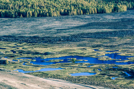 Rivers and lakes in the mountain valley on a Sunny day, view from a height.