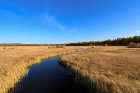 a small waterway across the wetland at autumn