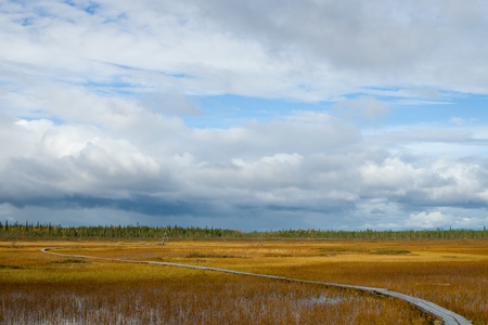 Open swamp in northern Finland and beautiful autumnal weather