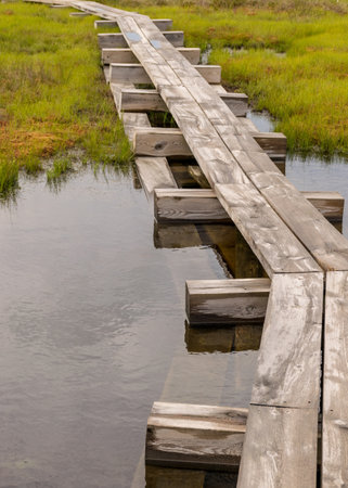 Ecological trail - wooden walkways laid in the swamp.