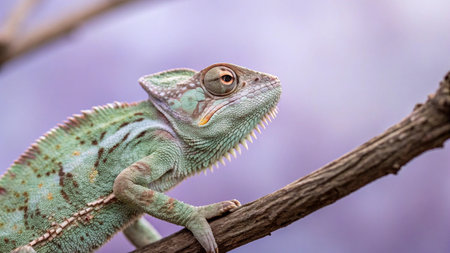 Chameleon on a branch Chamaeleo calyptratus. Generative AI