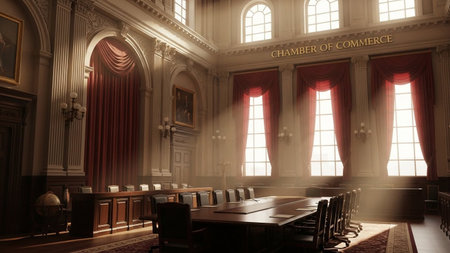 The long, reflective table of a modern boardroom sits empty, waiting in silence for the next major decision.