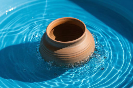Rustic clay pot on sand-laden surface illuminated by natural light