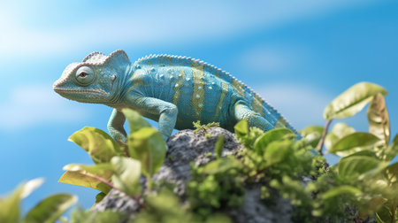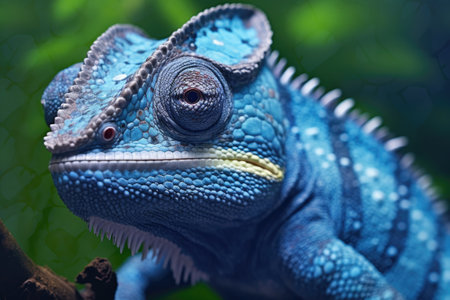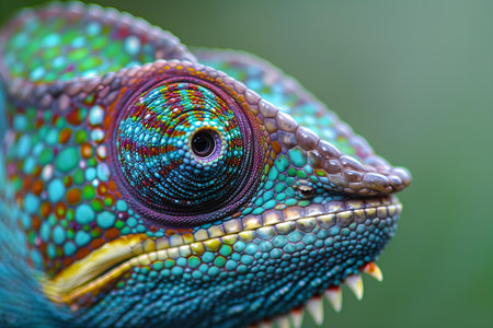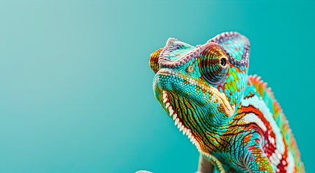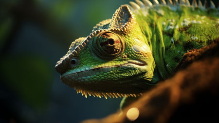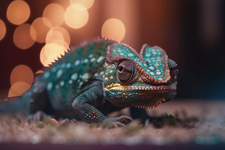 Close-up view of chameleon's rainbow-colored scales Creating using generative AI tools