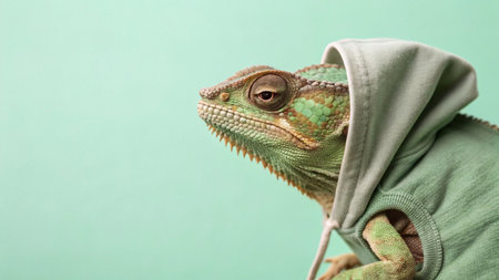 Chameleon in Sunglasses on Green Background: A Captivating Image for Corporate Marketing Banner. Concept Corporate Marketing, Chameleon, Sunglasses, Green Background, Captivating Image