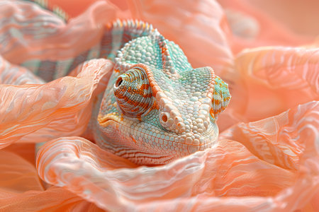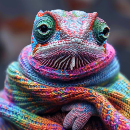Chameleon in a rainbow scarf, color blen