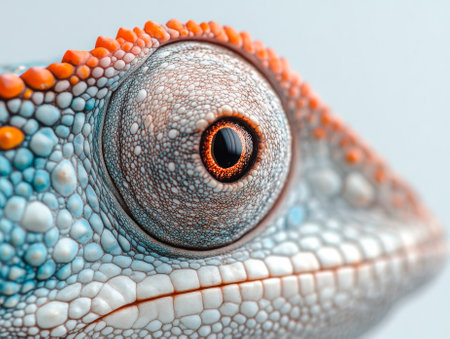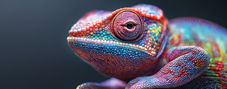 A vibrant chameleon with colorful scales symbolizing adaptability and transformation, captured crisp detail and studio quality