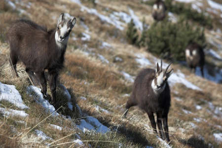 Group of mountain chamois inTatry mountains, Czerwone Wierchy, Cervene vrchy