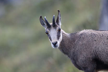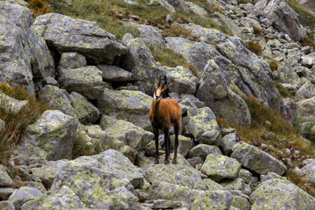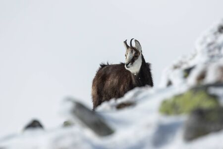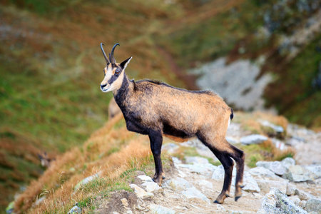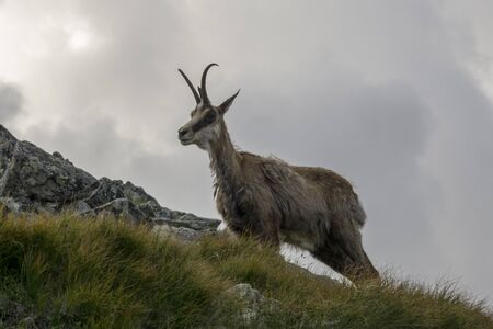 Tatra chamois (rupicapra rupicapra tatrica) in mountains with blurred background. High Tatras, Slovakia, Eastern Europe.