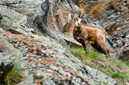 Tatra chamois or KamzÃk vrchovsky tatransky critically endangered (CR) in the early summer in High Tatras region in the Tatra National Park (TANAP), Slovakia.