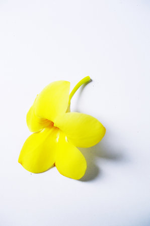 Close up fragrant flowers of climbing ylang-ylang, climbing ilang-ilang, manorangini, hara-champa or kantali champa with leaf and shadow on white background.